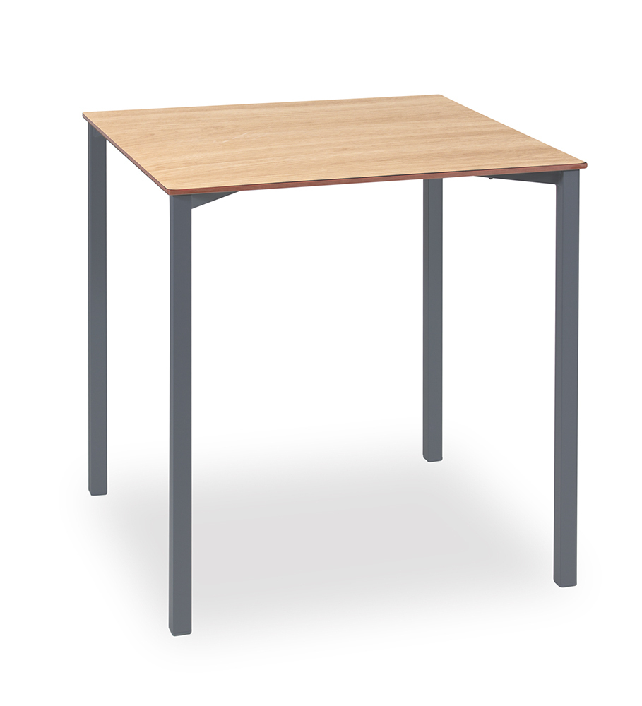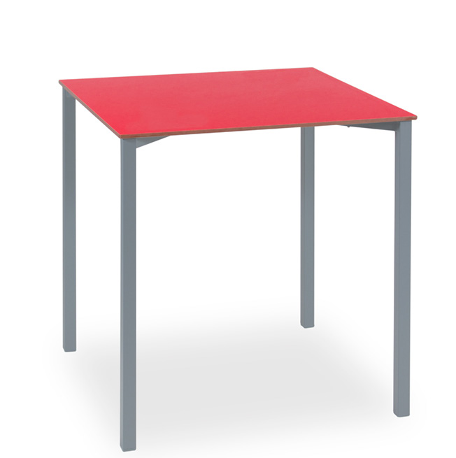 Mesa con estructura de acero pintada en aluminio bicapa, negro o marfil de 30×30 mm. Tapa de compacto.